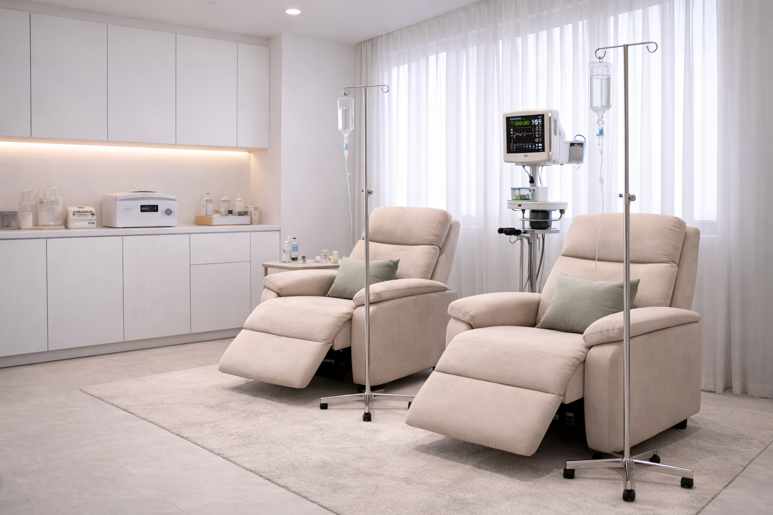 Также используются готовые составы – Глутатион, Лаеннек, капельницы с витамином C. Подходящий вариант коктейля для внутривенного вливания подбирает наш врач совместно с пациентом в ходе первичной консультации.